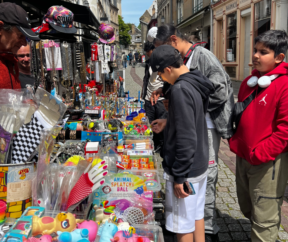 44 lucky students kicked off their adventure with a scenic coach ride to the ferry port. From the ferry, they enjoyed breathtaking views of the iconic white cliffs of Dover. Upon arrival in France, they explored the enchanting walled town of Boulogne, where they practiced their French speaking skills in the local shops and restaurants, followed by a quick game of basketball before heading to their next destination.
